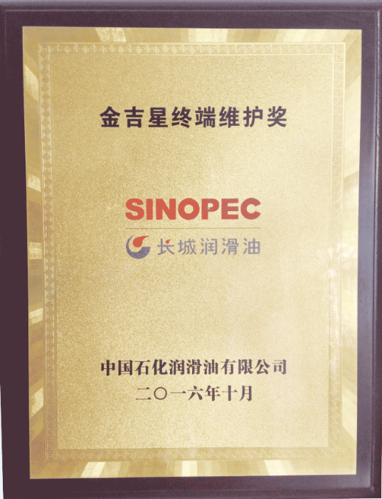 長城工業(yè)潤滑油授權(quán)證書